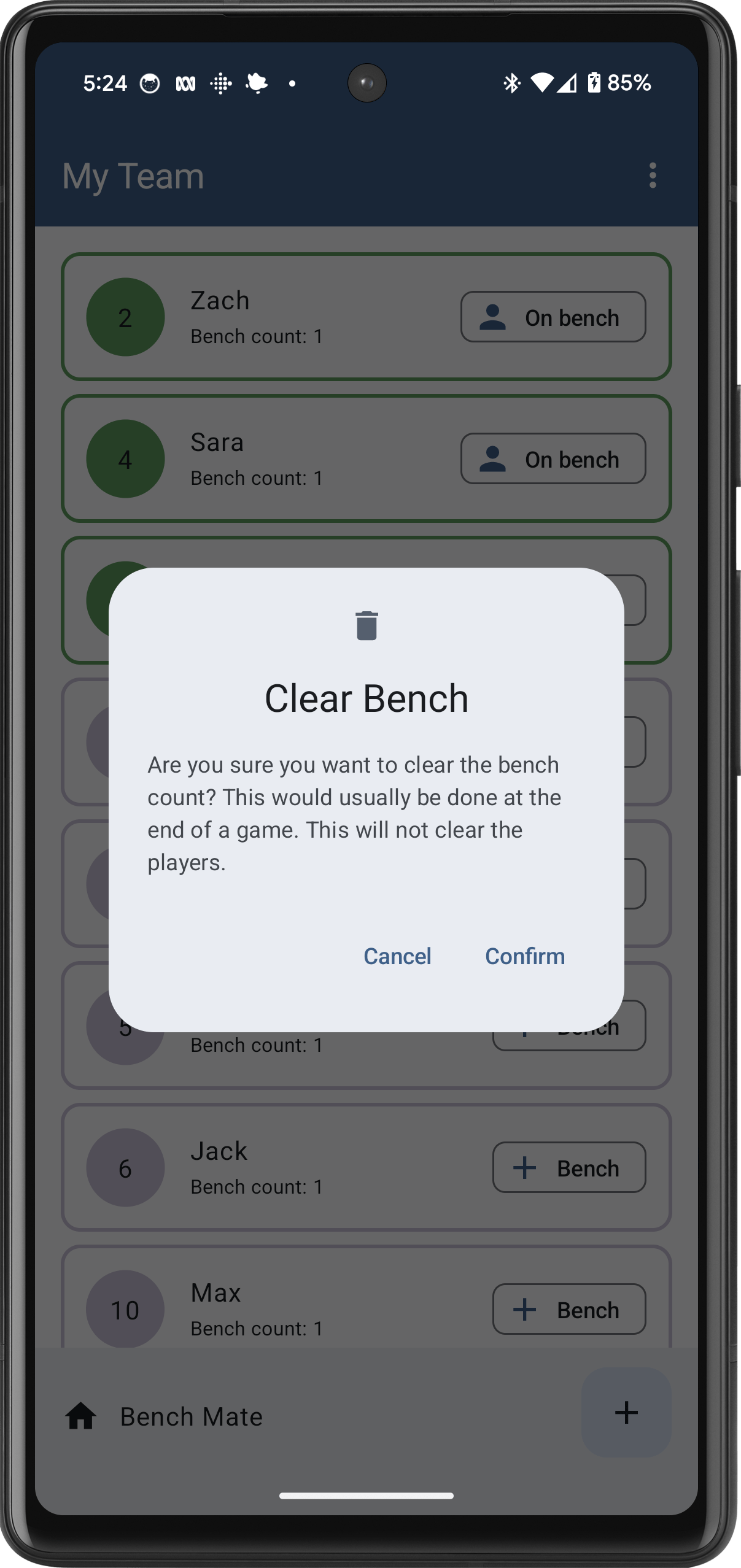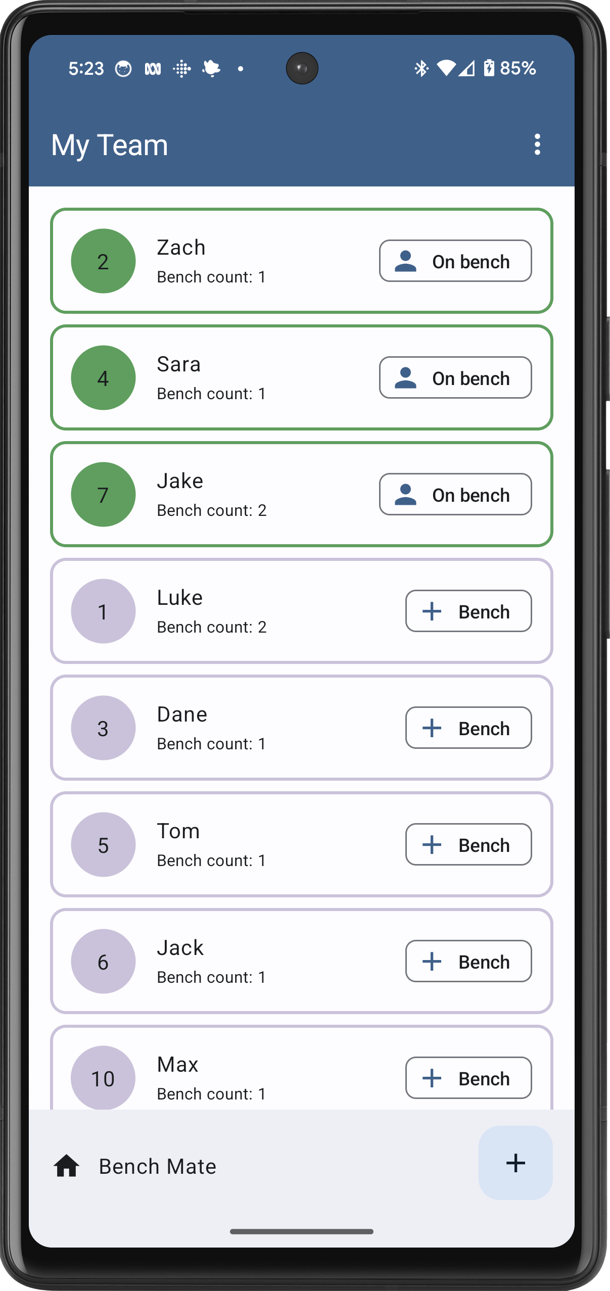 What I needed from an app was a simple list of players that I could use to add and remove players from the bench. I also liked the idea of being able to create the team list as I added players to the bench, rather than having to set it up ahead of time (as I attempted to do with my piece of paper).